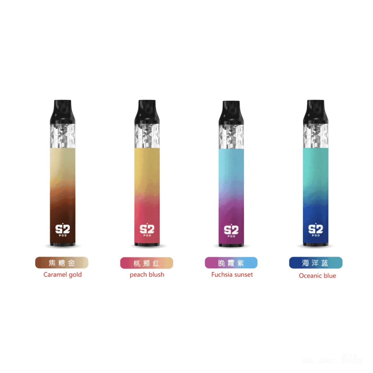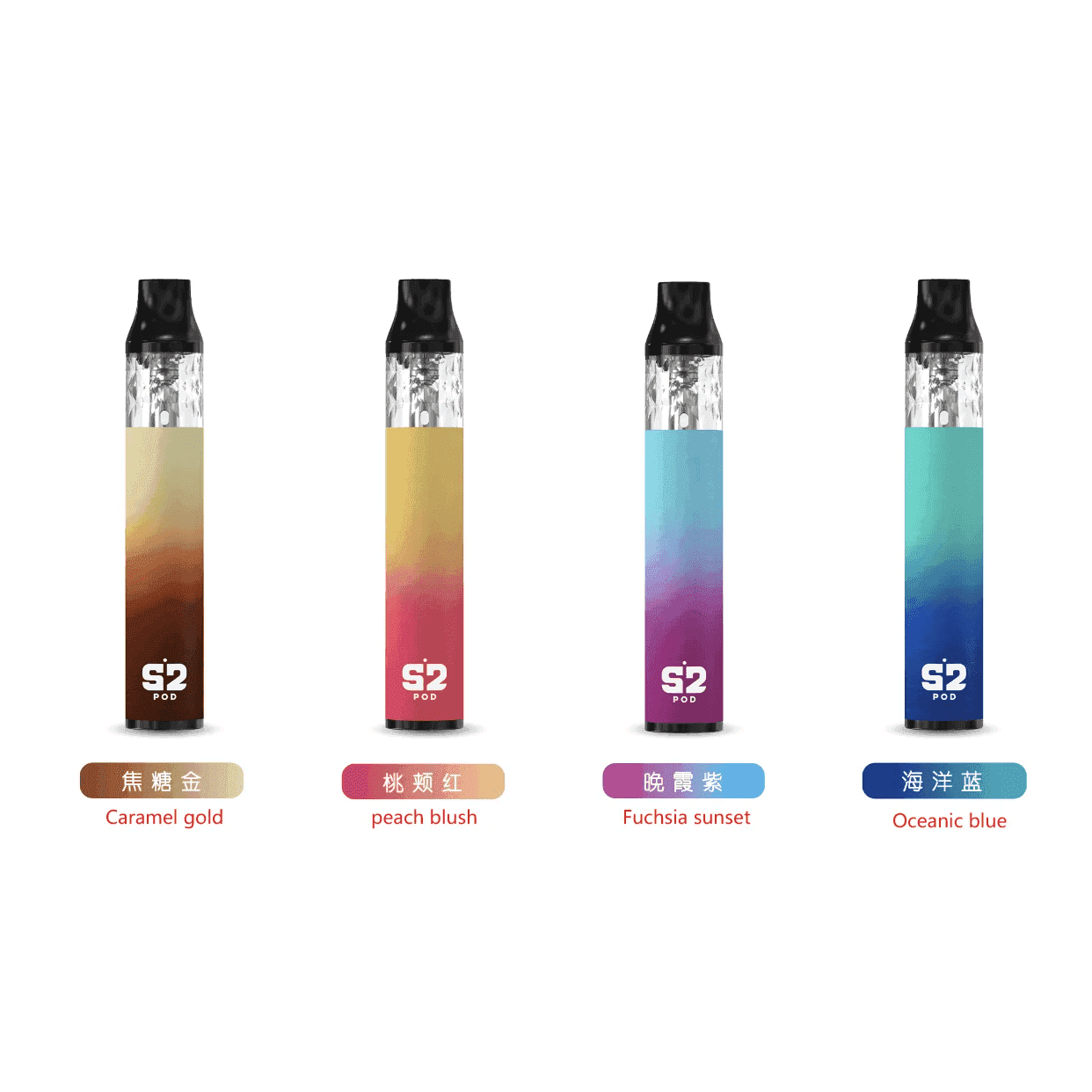 焦糖金, 桃頰紅, 晚霞紫, 海洋藍, S2 POD将軍煙彈(一盒三入)